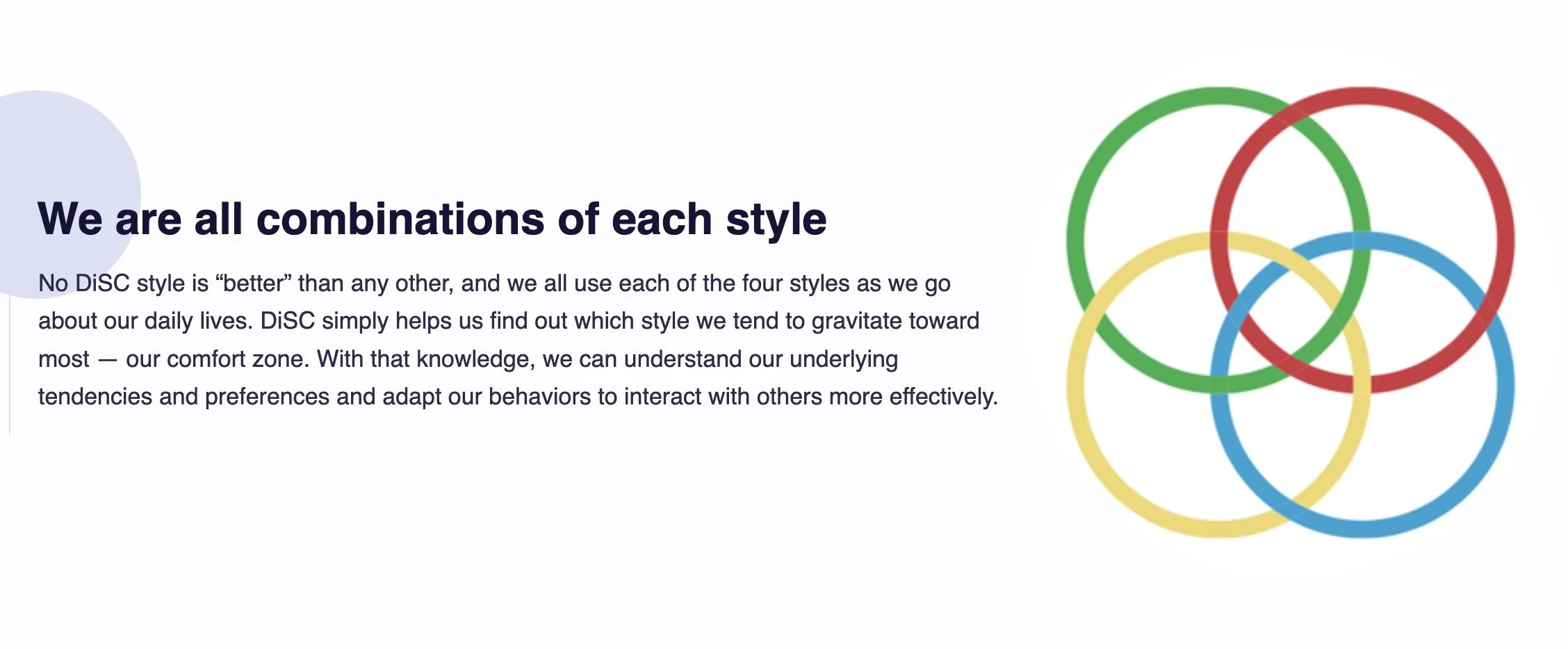 DISC Overview: Experience with group settings: how high D and I types are energetic and assertive, while high S and C types are collaborative and analytical. Practice identifying DISC types in everyday situations to become more proficient with the assessment.